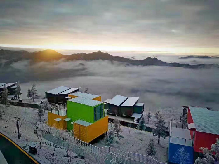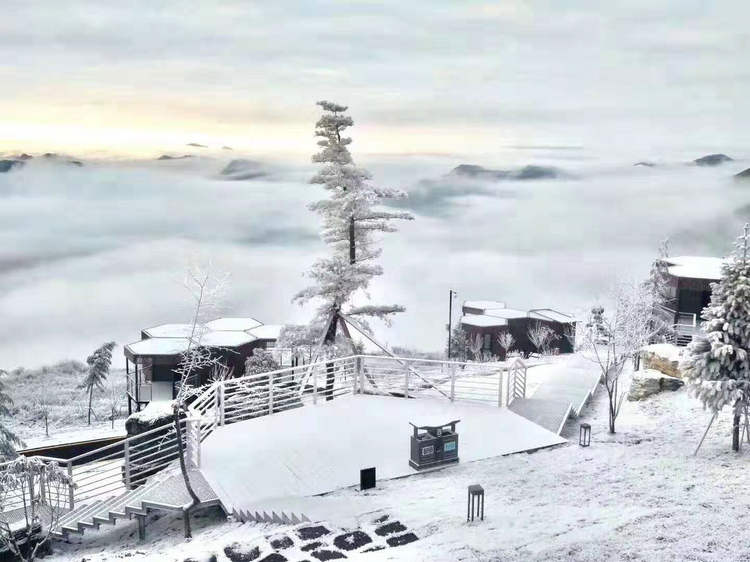五峰国际滑雪场独岭雪景,到五峰滑雪正当时 独岭云顶酒店雪景