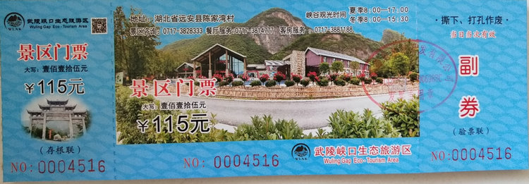 挂牌价--武陵峡峡谷景区门票价格 115元每人,武陵峡温泉门票价格 168元每人。