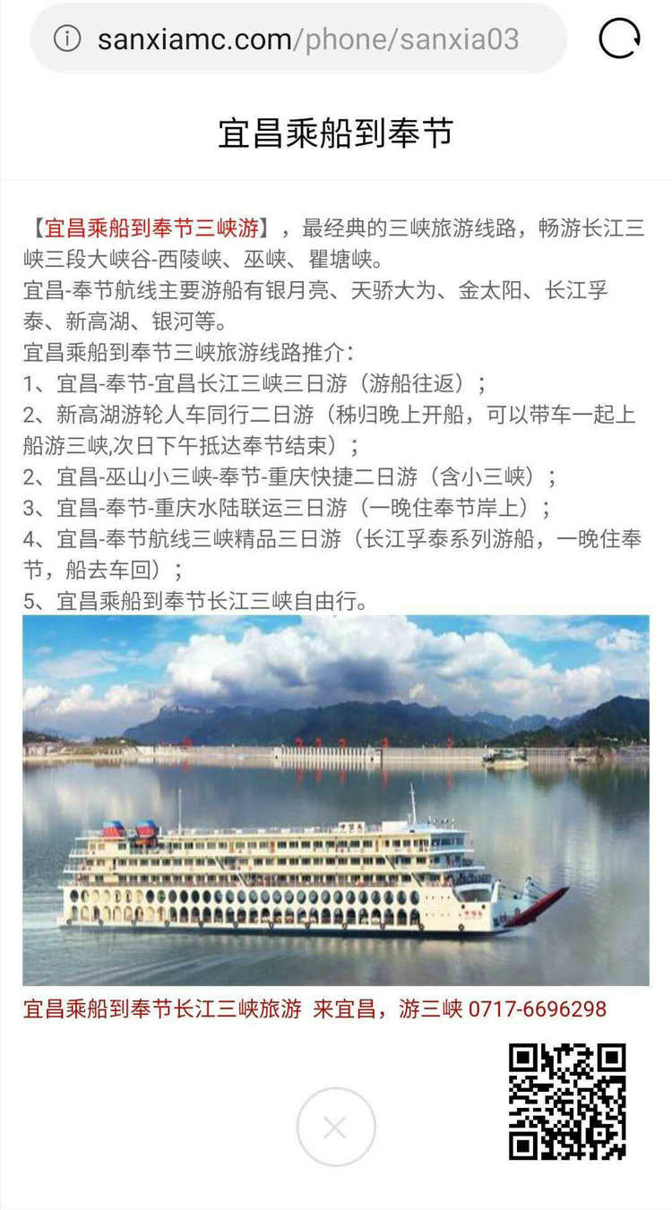 4、宜昌-奉节航线三峡精品三日游(长江孚泰系列游船,一晚住奉节,船去车回);