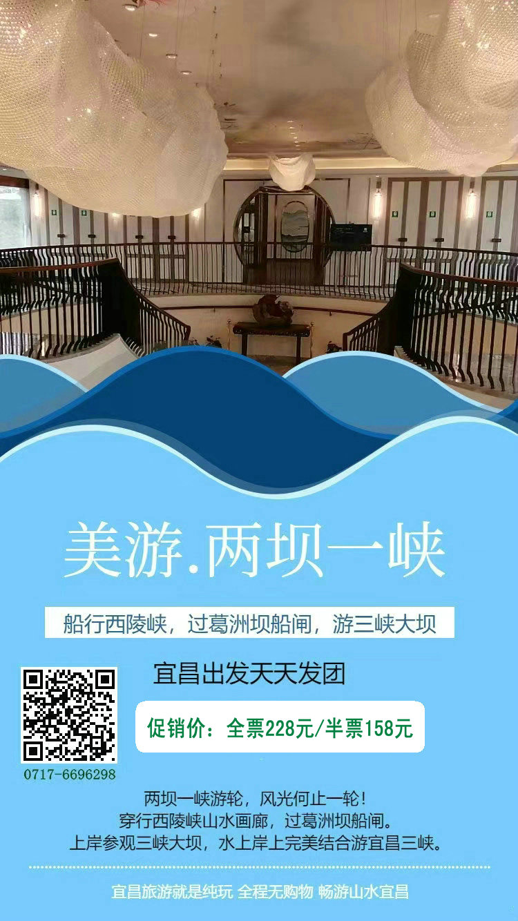 6、三峡升船机半日游(三峡五号游船,体验垂直升降); 7、西陵峡、葛洲坝船闸、两坝一峡自然风光豪华游轮自由行半日游;