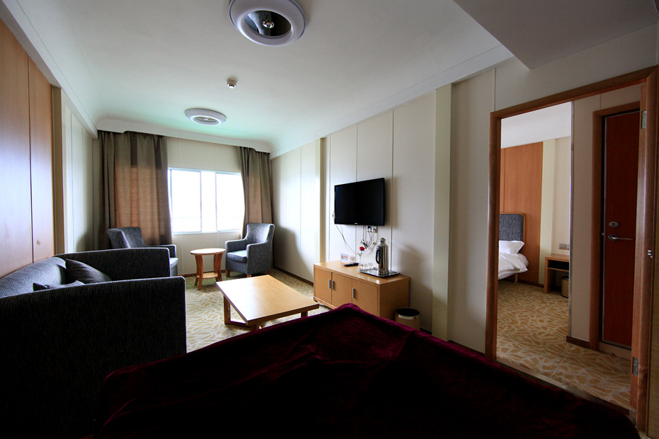 3、休闲套房共6间,均设在游船三楼前部,房内配套有小型会客区和电动棋牌室,房间面积是家庭房的两倍,适合朋友小聚或商务出行,房间后部紧邻足浴室、多功能厅和餐厅,是游客在船上休闲观光、棋牌娱乐的最佳选择。