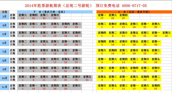 胜景游宜昌出发到重庆行程:2014年长江三峡胜景、神农架探秘四日游〈 总统2号游轮〉(含神农架、三峡)