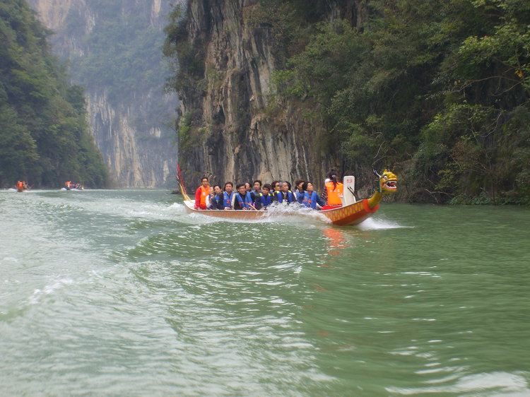 上段7公里惊险刺激漂流,下段7公里免费乘坐龙舟水上观光、水上高空绝技、鬼斧神工峡谷风光,游客犹如行走于画卷。