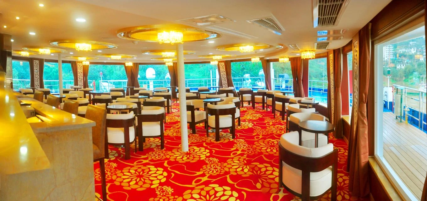 6、五楼(娱乐甲板):客房、多功能厅、网吧、棋牌室、电影院KTV;