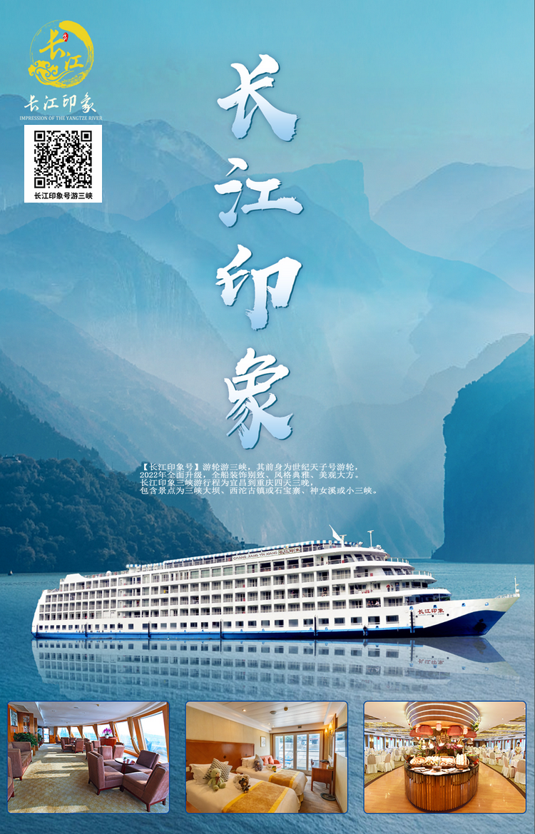 宜昌到重庆长江三峡旅游豪华游轮--长江印象号,其前身为世纪天子号游轮,2022年全面升级。