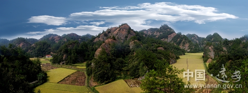 湖北省最大的丹霞地貌风景区--金家湾风景区位于宜昌市远安花林寺村西太平山山麓,是一个以丹霞山水自然风光为基础,融山野田园景色和乡土民俗风情于一体的风景区。景区将于2015年5月1日正式开门营业。