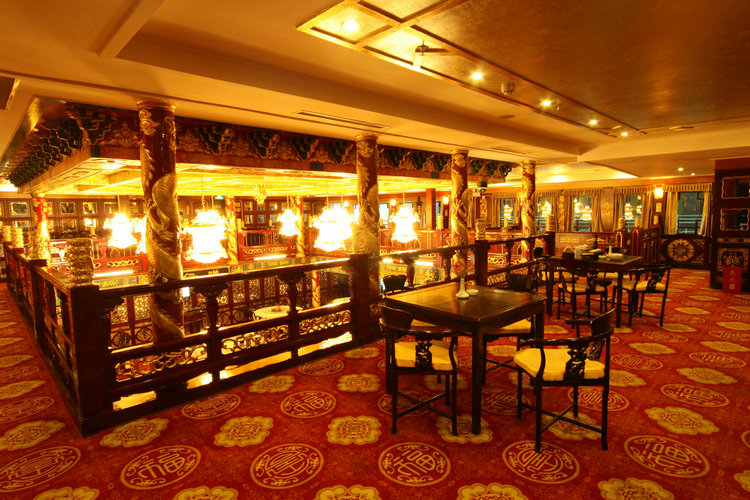 2018年游轮公司投巨资重新装修了皇家盛世乾隆号,别具一格的船体,恰似文言豪放的巨龙,烘托出华夏人炙烈的图腾崇拜和龙的传人执著的民族精神。船上花团锦簇的衣食住行,金碧辉煌的古建筑装饰,完全再现朝廷生活的规范服务,无一不突出清代鼎盛时期帝王的权利、享乐和奢华。