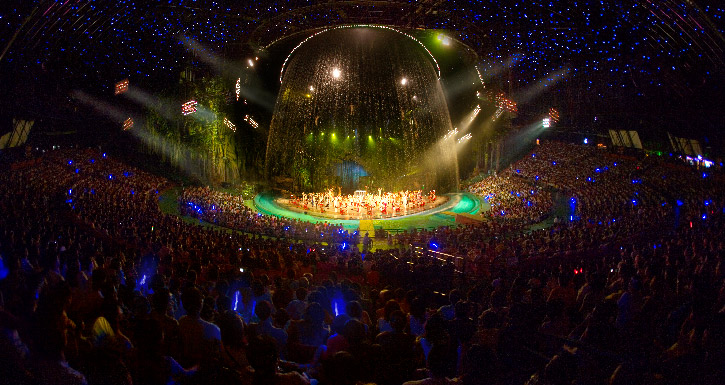 长隆国际大马戏位于全国AAAAA景区广州长隆旅游度假区,拥有全球首创实景式马戏舞台,数千万巨资打造极致奢华的尖端舞美科技,和数亿巨资建造的全世界最大的马戏表演场,能容纳近8000名观众同时观看。全球顶尖的舞台设施和主题节目,自然少不了庞大的国际化演艺团队,拥有来自20多个国家,横跨亚洲、欧洲、美洲、非洲共300余名的马戏精英同台演绎。此外,还有多达40余种500多只珍奇动物与马戏的精英们同台献技。