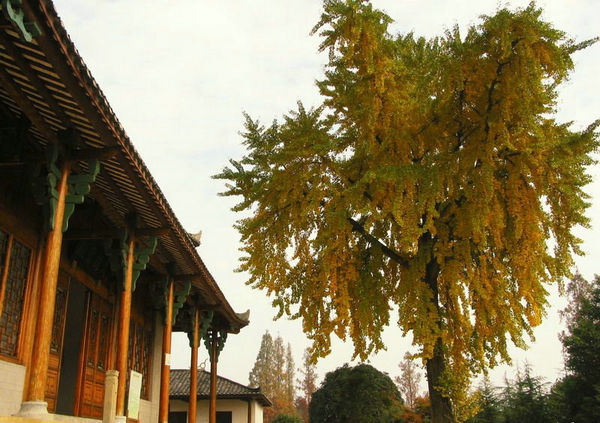 一株千年古银杏,枝条不是上指或横生,而是如柳丝一样下垂。这株名叫"垂枝银杏"的古树,最长的垂枝长达5米以上,微风吹过,满树的垂枝如柳絮飞舞,如海带倒悬,如满面流动,如绿绸漂洗。