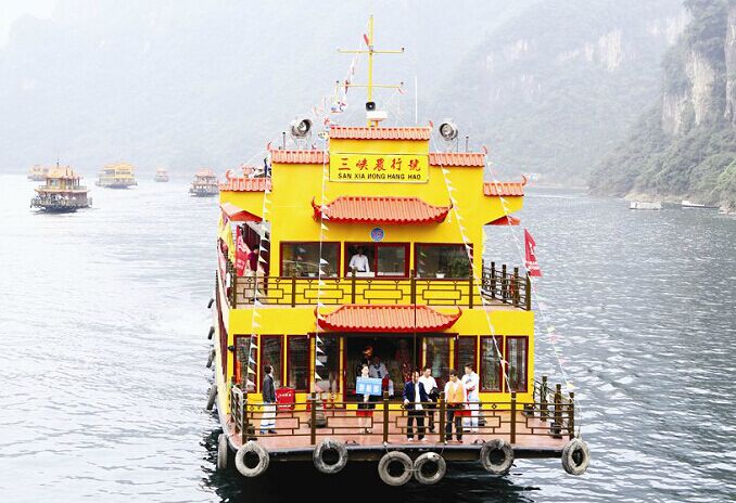 宜昌清江画廊最大仿古游船首航 乘仿古船游清江画廊