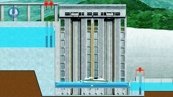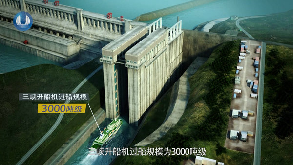 小船(3000吨以下)通过三峡大坝垂直升船机直接快速通过三峡大坝,