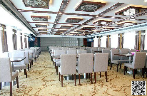 高峡平湖游轮三号系列豪华游轮荷载人数为500人,分上下四层,游轮为酒吧式休闲观光布局,有卡座雅座、包房等设施,二楼三楼有露天观光甲板,是您畅游三峡和神农架的豪华游轮,游轮两侧玻璃透明通透,让游客可以一边品味美食,一边欣赏窗外优美风景。