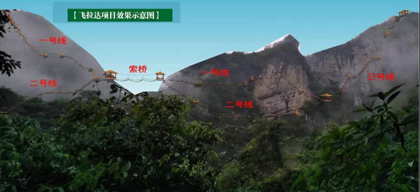 木桥溪景区将设第一无二的飞拉达项目,飞拉达为意大利语,意为铁索栈道,是一种修建在岩壁上、利用铁索、脚蹬为辅助,进行峭壁攀爬的登山方式。木桥溪景区内的飞拉达项目全长700多米,上接悬崖,下是密林,近可俯看项目全貌,远可眺望群山之巅,视野开阔,大气磅礴。