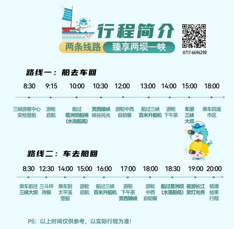 温馨提示:含升船机船票的线路,因升船机票额总量有限,不能超额接待,规划行程之前一定要提前咨询客服0717-6488298 是否有余票,确定有票再下单,以免带来不必要的麻烦。