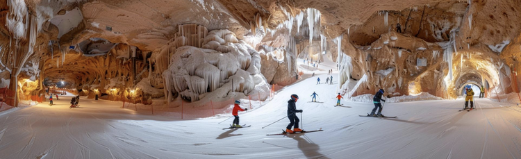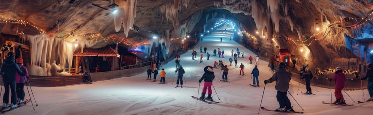 餐后前往【武陵峡口洞穴四季滑雪场】是利用天然溶洞的恒温和保温效果,将杨树洞宽阔的区域打造成四季冰雪乐园。节省能耗的同时,结合溶洞天然条件形成别有洞天的梦幻场景,设置滑雪场、戏雪乐园、冰雪美食街等项 目,方便四季体验冰雪乐趣。特别是在炎热的夏季既能滑雪锻炼,又能休闲避暑。