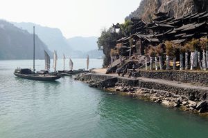 乘着古老的三峡帆船,在摇曳的桨橹声中进入三峡人家碧绿的江面、宁静的山水、苍翠的草木,到处是葱葱笼笼的生命,弥漫着植物的气息,古帆船静泊水中,吊脚楼掩映竹林,石拱桥亘古典雅,水车在水里转动,猿声在两岸啼鸣,小鸟在天空飞翔,鸡鸭鹅成群结队。