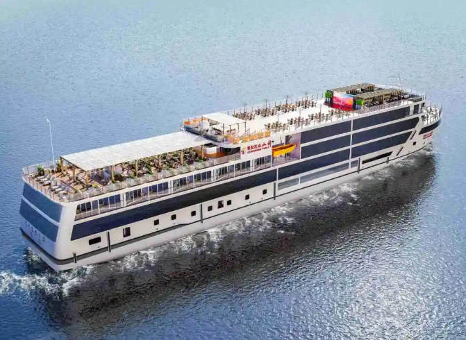 首航日期:2024年10月13日 ;游船速度:25km/h ;船体长度:100米 ;船体宽度:15米;甲板层数:5层 ; 载客人数:650人。