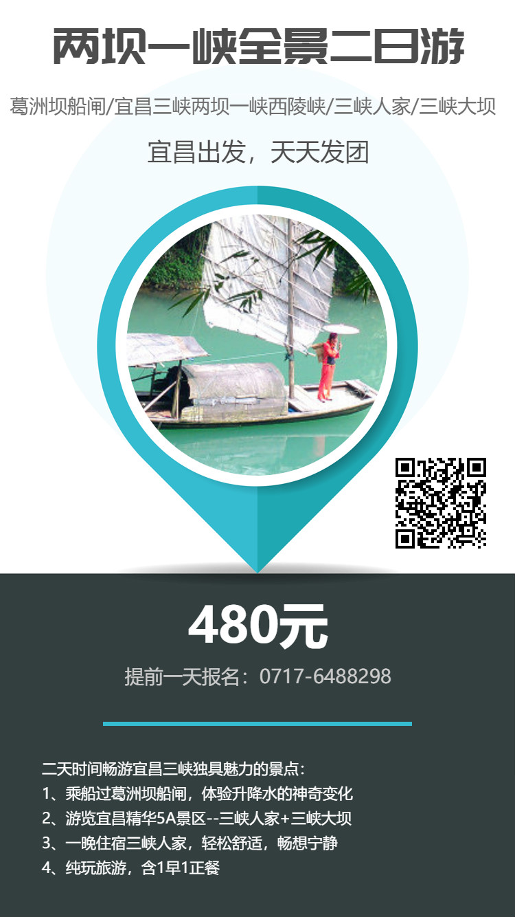 宜昌三峡大坝、两坝一峡西陵峡、三峡人家全景游,二天时间完整的畅游三峡具魅力的景点: