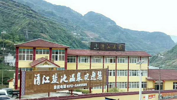盐水温泉出露于清江南北两岸及河中江底,目前山庄泉眼位于北岸江岸,常年水温42.5℃,日流量640多吨,流量6.01升/秒,温泉水属中性极硬含氟氯钠钙咸水,是华中地区含各种微量元素最多的优质温泉,土家人认为能“医治百病,沐者辄愈”,被土家人誉为“神水”。